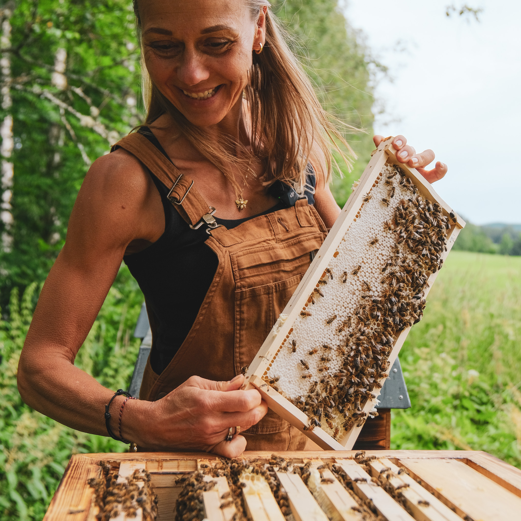 BeeKi ble startet av Tone Bryn i 2022 - med kjærlighet til biene og et ønske om å skape ærlige, sunne, rene - og funksjonelle hudpleieprodukter med nærende oljer og råvarer fra egne bier.
